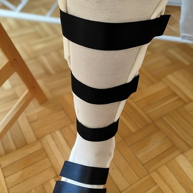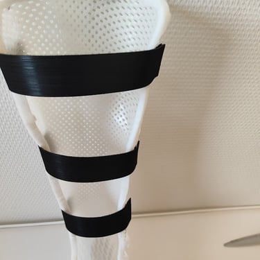 Attelle de jambe sur mesure à 90° pour immobiliser le tendon d'Achille. Réalisée au cabinet Ortho'care à Neuville sur Saône, près de Lyon