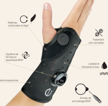 Vous souffrez d’une tendinite, d’une tendinite de De Quervain, d’un syndrome du canal carpien, d’une entorse du poignet ou du pouce, ou d’une fracture ?
