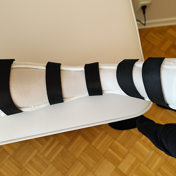 Attelles thermoformées sur mesure : moulées directement sur le membre, elles stabilisent et protègent les articulations tout en garantissant confort et efficacité.
